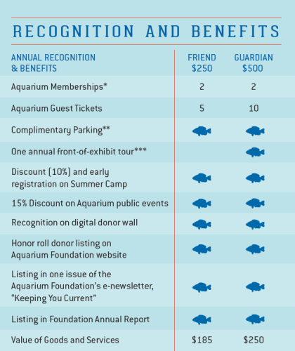 Aquarium Friends Circle members receive the following recognition and benefits: