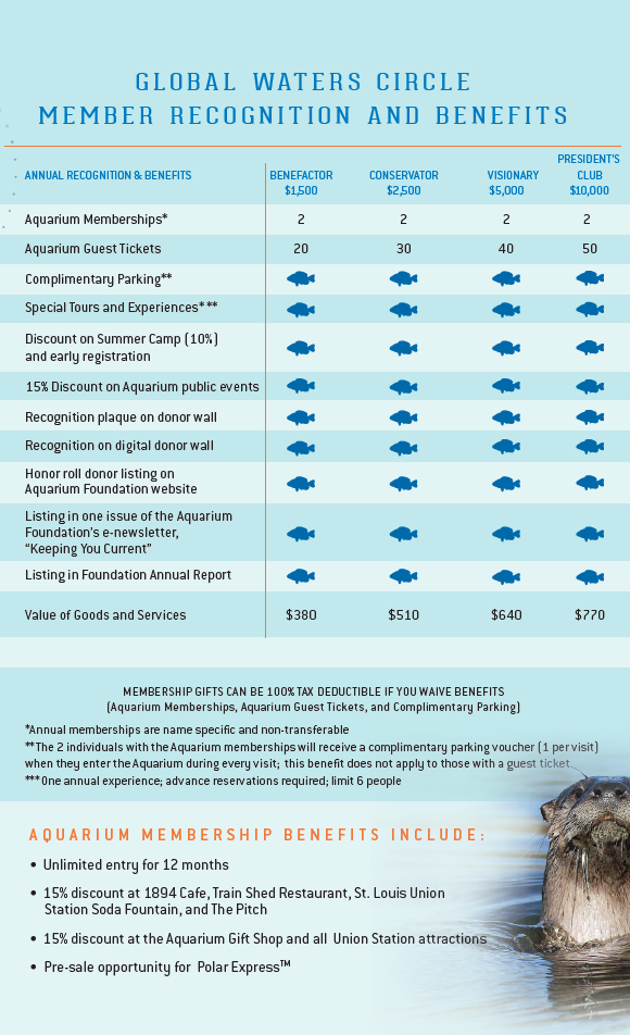 If you have questions about memberships, please call the Aquarium Foundation office at (314) 923-3926 or email info@stlaquariumfoundation.org.